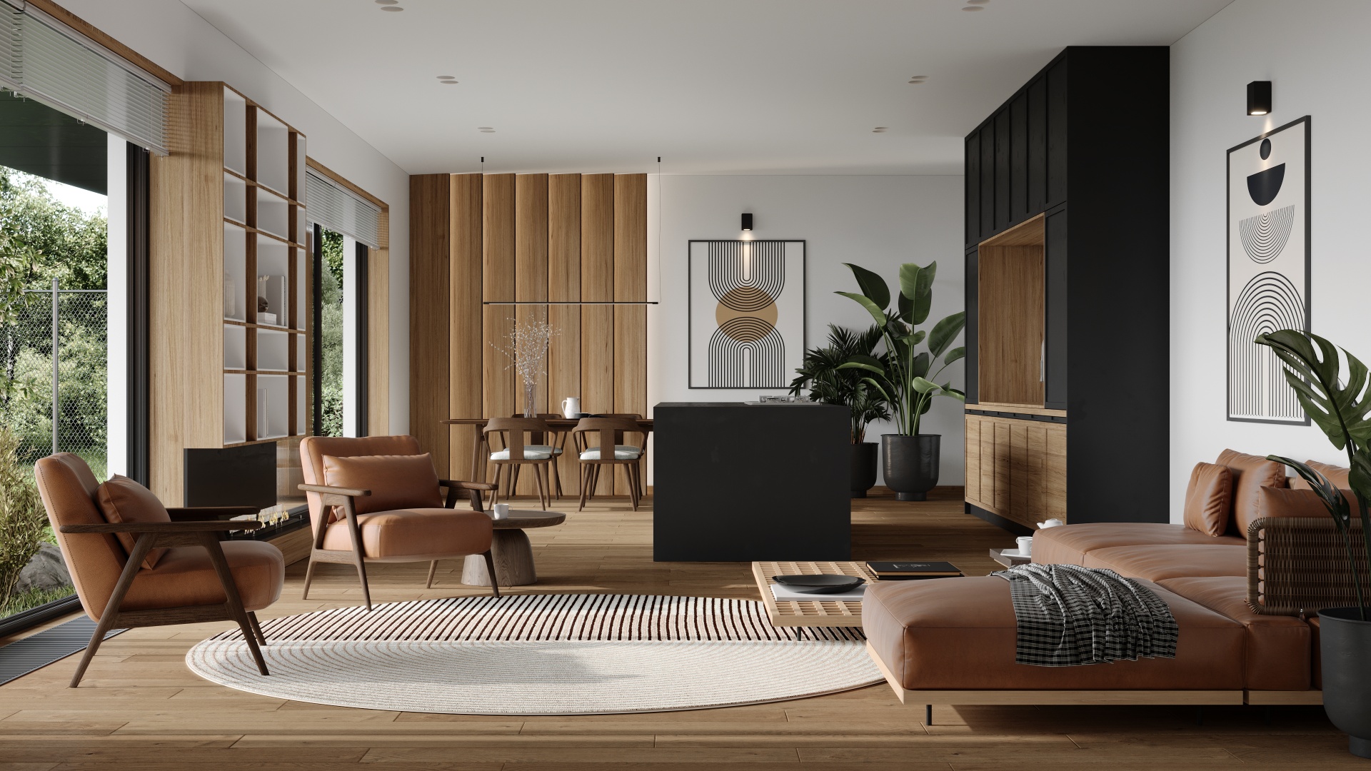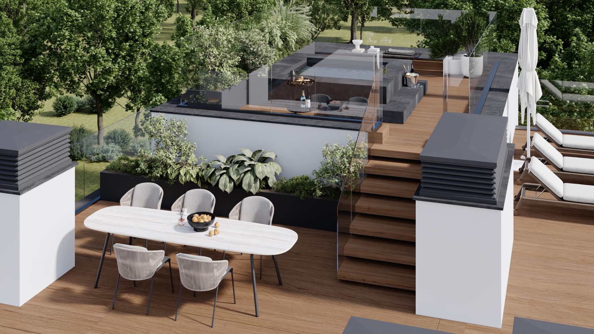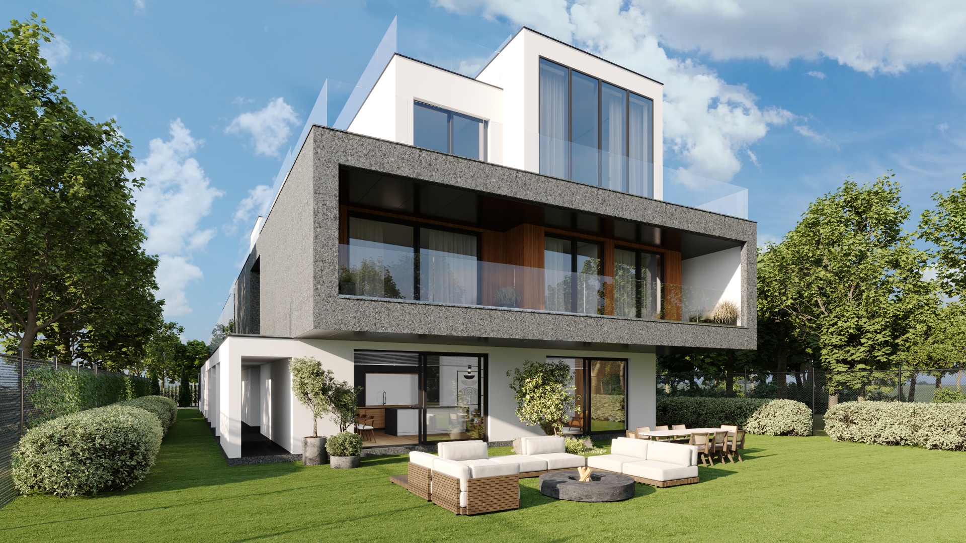 Każdy z apartamentów oferuje ponad 100 m2 funkcjonalnej powierzchni, a dodatkowe udogodnienie stanowią tarasy oraz ogród. Wrażenie przyjaznej, ogromnej przestrzeni uwydatniają panoramiczne okna, pozwalające cieszyć się domownikom stałym dostępem do naturalnego światła i widokiem na zieleń.